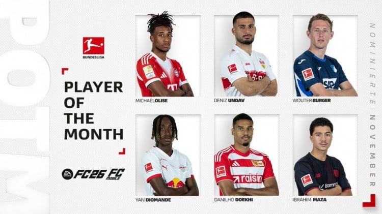 德甲官方公布了11月最佳球员的候选名单,奥利塞、翁达夫在列。
